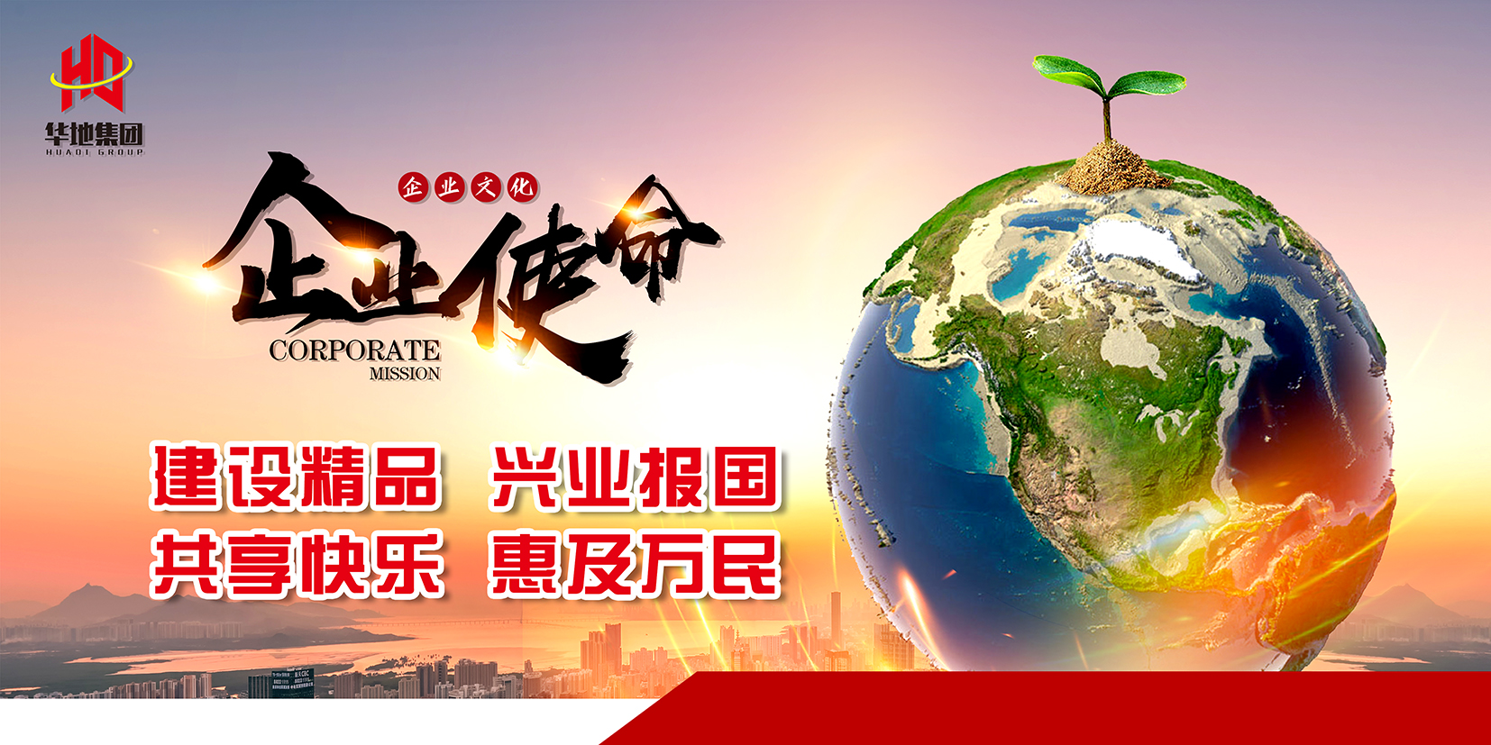 締造百年華地:繼往開來,志存高遠。著眼未來,華地人不忘初心,突破自我,科學管理,聚焦大基建、大消費、大投資,逐步實現建筑施工、地產開發、生態旅游、綠色農業、PPP項目,全產業鏈經營的“專業化、標準化、信息化、區域化、國際化”,傾力打造精品工程、精品農業、精品旅游、精品投資項目,為員工締造百年常青企業。