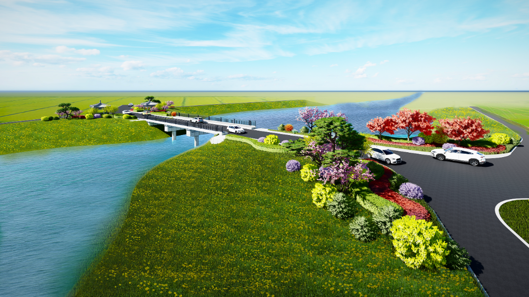 放心橋工程,牽動著鄉村百姓的心,村民們每天去施工現場,盼望著早日開通;牽動著市、鄉領導的心,市委書記親自現場調研,期盼早日解決百姓之急,也牽動著薄曉放董事長的心,他多次現場拉練檢查,確保每個環節精益求精,既修建大橋,疏通道路,提供便利;又治理河道,加固堤防,保障安全;并在村內沿路綠植7余種樹共計500多株,4余種花共計37000多株,美化家鄉環境。