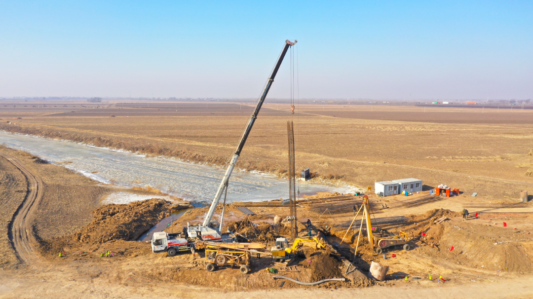 2022年1月7日,放心橋工程正式啟動,場地平整、臨建搭設、圍堰引流及樁基礎施工等工序。