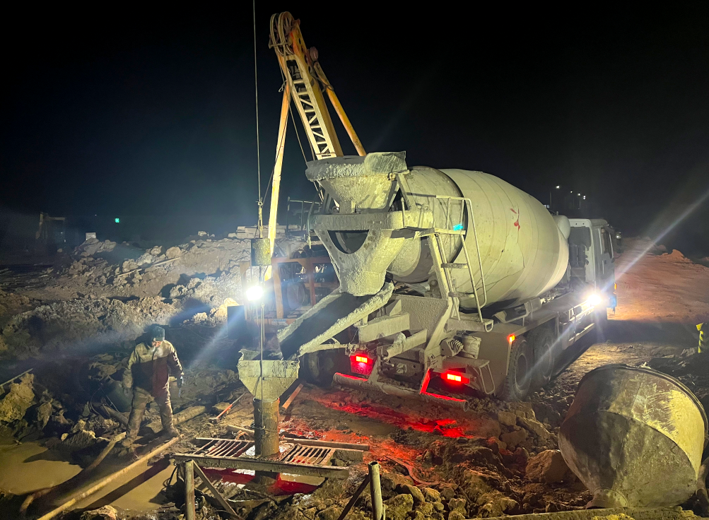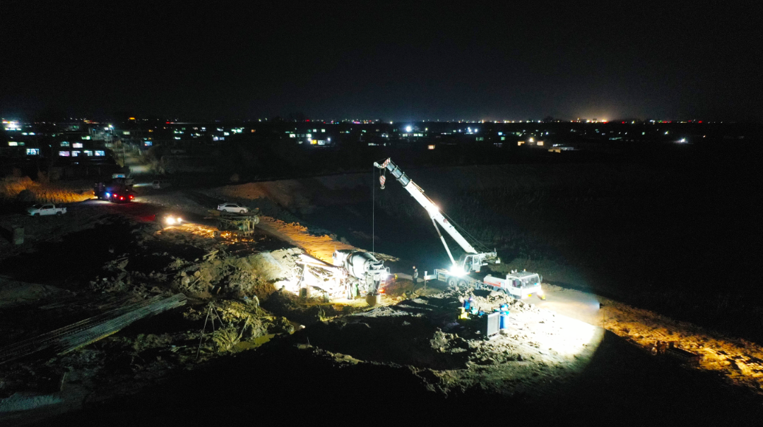 為了家鄉百姓早日走上踏實的橋面,錦州華地建設集團開展夜間施工,鉆機不斷、澆筑不斷,燈火通明的黑夜里,譜寫了錦州華地建設集團建設者緊抓工期的辛勤勞作。