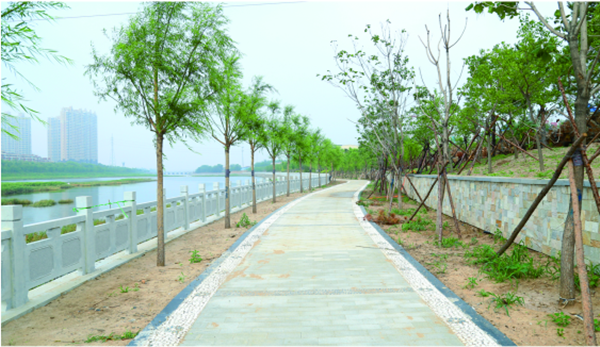 錦州市女兒河生態修復工程建設,總面積185743平方米,岸坡總長4210米,道路及鋪裝面積23000平方米,給排水管道4200米,風景石2040噸,安裝太陽能庭院燈200盞;種植樹木9000株,修剪籬、地被等54762平方米,草地36374平方米。