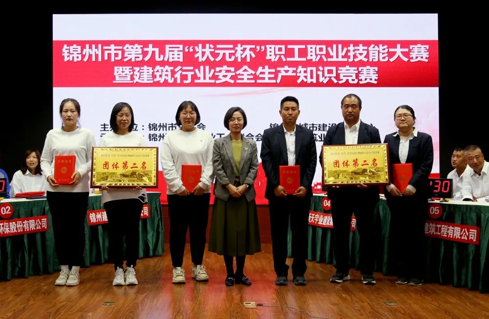 2022年9月23日下午,錦州華地建設集團參加由錦州市總工會、錦州市城市建設服務中心主辦;錦州市行業工會聯合會、錦州市建筑業協會聯合承辦的錦州市第九屆‘狀元杯’職工職業技能競賽暨建筑行業安全生產知識競賽”,在30家參賽隊伍中參加筆試并且突出重圍進入決賽,最終榮獲本次決賽第二名,由錦州市總工會生產保護部部長鮑春香為他們頒獎。